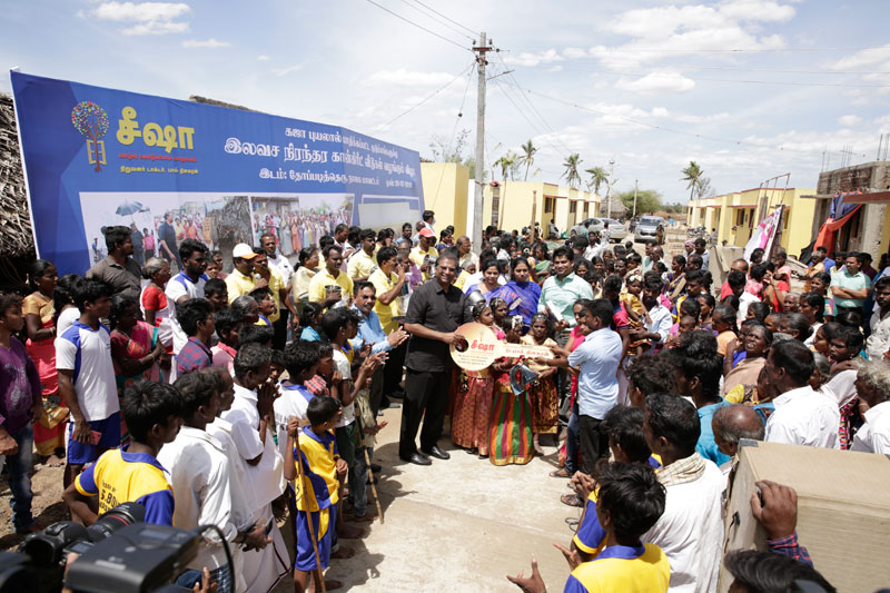 As part of its rehabilitation support assured by Dr. Paul Dhinakaran during his visit to the Gaja cyclone-hit communities in November 2018, SEESHA has been involved in the construction of 100 free permanent concrete houses and facilitating basic amenities such as drinking water and sanitation, at three hamlets from Nagapattinam district.