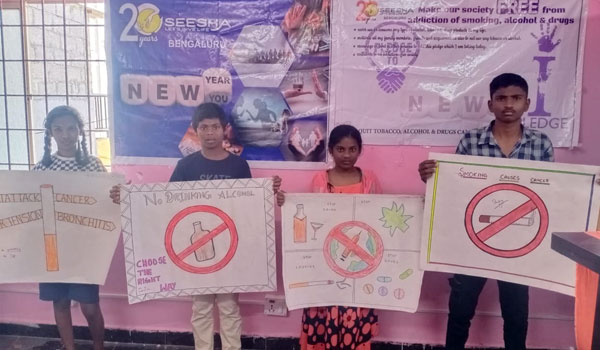 Recovery from substance abuse is a journey of renewal & rebirth with a willingness to work for sobriety.To overcome tough days to stay sober and learn to say 'NO' to alcohol, smoking, and drug abuse, SEESHA organized sensitization campaigns under the theme 'New Year, New You!' in its target project communities.