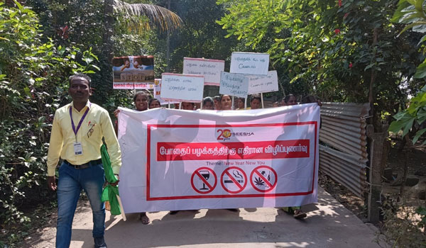 Substance use can quickly take over a person's life. When substance abuse continues, the person becomes more and more dependent on the illicit substance to feel 'normal', making their usual activities less pleasurable. To sensitize the community members on the harmful effects of substance abuse, SEESHA Team along with the Skill Development trainees, learning centre children went on a rally holding de-addiction awareness placards as part of the ‘New Year, New You!’ campaign.