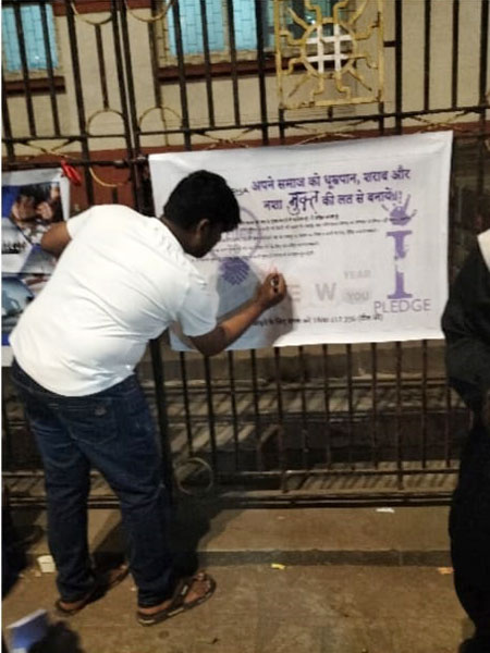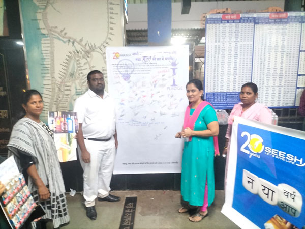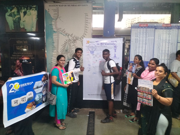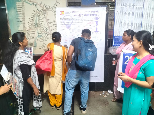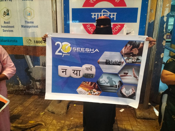 Hundreds of people from all walks of life joined SEESHA’s sensitization campaign at the Mumbai-Mahim railway station and signed the substance-free pledge, promising to lead a substance-free life, motivate their loved ones to live addiction-free, and contribute to a substance-free society.Placards were also displayed to reduce stigma and create awareness to live purposefully beyond addiction.