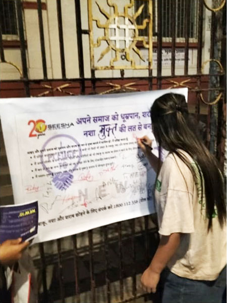 Several awareness programmes, namely art competitions, rallies, signature campaigns, pledges, film shows, and skits, emphasising the concept of 'No Drugs, No Alcohol, Be Smoke Free, Live Substance Free' were conducted across SEESHA project locations.