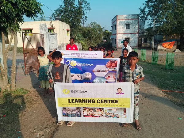 To build a strong foundation for a substance-free life among children, the SEESHA team in Vyara, Gujarat, organized a de-addiction sensitization rally under the theme 'New Year, New You!' with the SEESHA Learning Centre students from Vajpur. A de-addiction pledge was also taken at the end of the procession.