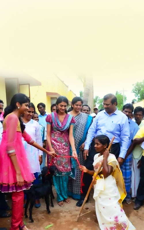 On July 12, 2013, Dr. Paul & family dedicated and handed over the keys of those 37 concrete houses to the community members. The 37 houses with secure walls, functioning toilets and cooking facilities were built for a community that once used to live under a thatched roof (a house made of dried leaves and loose mud pieces). Each household was also given a pair of goats as a livelihood support, along with seed money to two self-help groups that aimed at mentoring women, and also teaching them the concept of saving. The Founders also inaugurated a Tuition center, Tailoring center and several schemes such as educational scholarships, widow pensions, disability pension, old age pension that were to be provided on a monthly basis. Welfare aids like new clothes and school kits were also provided to the children.