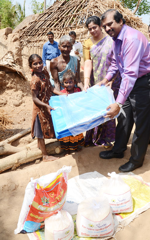 During the rescue operations following the devastating Cyclone Thane, SEESHA identified a small otherwise neglected hamlet called Salai Nagar with 42 inhabitants who had all lost their houses. Out of them, over 37 were mud houses that were fully collapsed. On hearing this, SEESHA’s Founder Dr. Paul Dhinakaran was so moved that he wanted to support and console them in person. Hence, he visited the people, churches and schools in the Salai Nagar community, to listen to their sufferings, and pray for them. He promised them that SEESHA would offer to begin rehabilitation support and promised to build 37 new concrete houses, which would become homes for the Salai Nagar community.