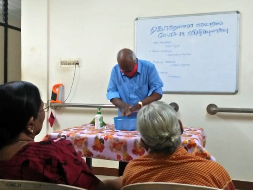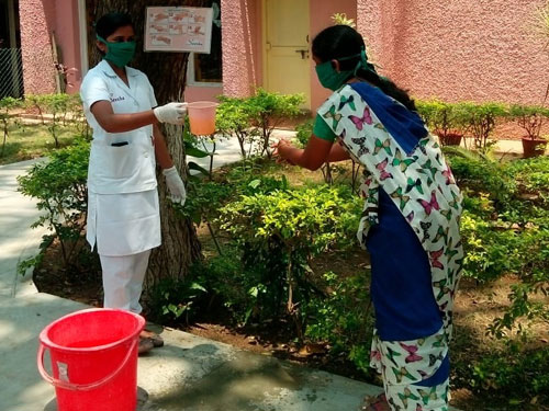 Beginning at Karunya Nagar and extending through the nearby tribal villages, awareness programs are being conducted through educational posters and demonstrations. Staff nurses demonstrate safe hand-washing techniques to each village community volunteer and they take it to the communities. The method of mixing disinfectants in the right proportion to be used in the communities, is also taught to them through demonstration. Dos and Don'ts to create coronavirus awareness are made as banners and are placed at high visibility areas both in English and Tamil.