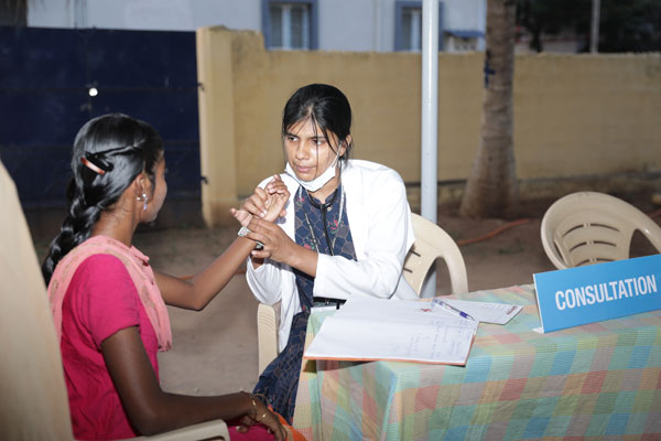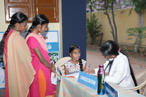 Dr. Shilpa Samuel Dhinakaran inaugurated a free medical camp at Moongilmadaikuttaipathy village on March 25th, 2022, to provide the marginalised population access to quality healthcare. A student representative from Evangeline Matriculation School from the local community also volunteered with the healthcare team during the occasion.